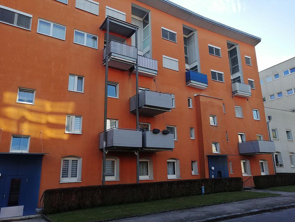 Die Wohnung besteht aus 2 Abstellräume, 3 Zimmer, 1 Küche, 1 Bad, 1 WC, 2 Abstellräume und 1 Loggia. Ebenso ist der Wohnung ein eigenes Kellerabteil und ein Tiefgaragenplatz (Kosten € 89,84/Monat) zugewiesen.